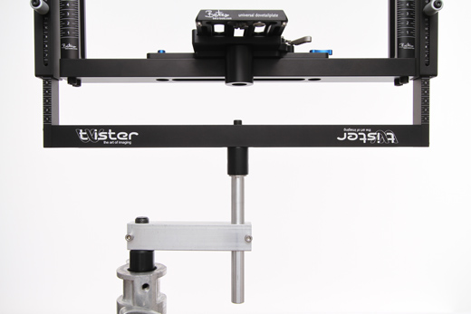 Gefrästes Leichtaluminium mit lasergravierten Markierungen für schnelle und leichte Höhenverstellung der Kamerabalance.